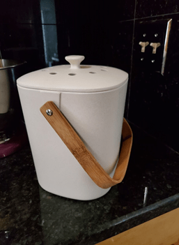 This is my compost bucket. It will serve as my indoor catchall for fruits and veggie scraps, my week’s worth of coffee grounds, and other miscellaneous small compostable paper products. At the end of every week, the idea is that I will take the contents of this and dump it into the garbage can behind our shed which is serving as the vessel for the compost pile. I got this one from Goop, but the brand is Bamboozle and it also comes in the color graphite. I think it looks lovely. It is also dishwasher safe and is just the perfect size to sit on the counter next to my KitchenAid. https://www.bamboozlehome.com/bamboozlehome-products/composter?gclid=CjwKCAjw97P5BRBQEiwAGflV6QeBVOoYc4BwrTwtfDM7MlOKaZhdBbYVxN8a2p38c_r3VW6BPj_3sRoCtZ0QAvD_BwE